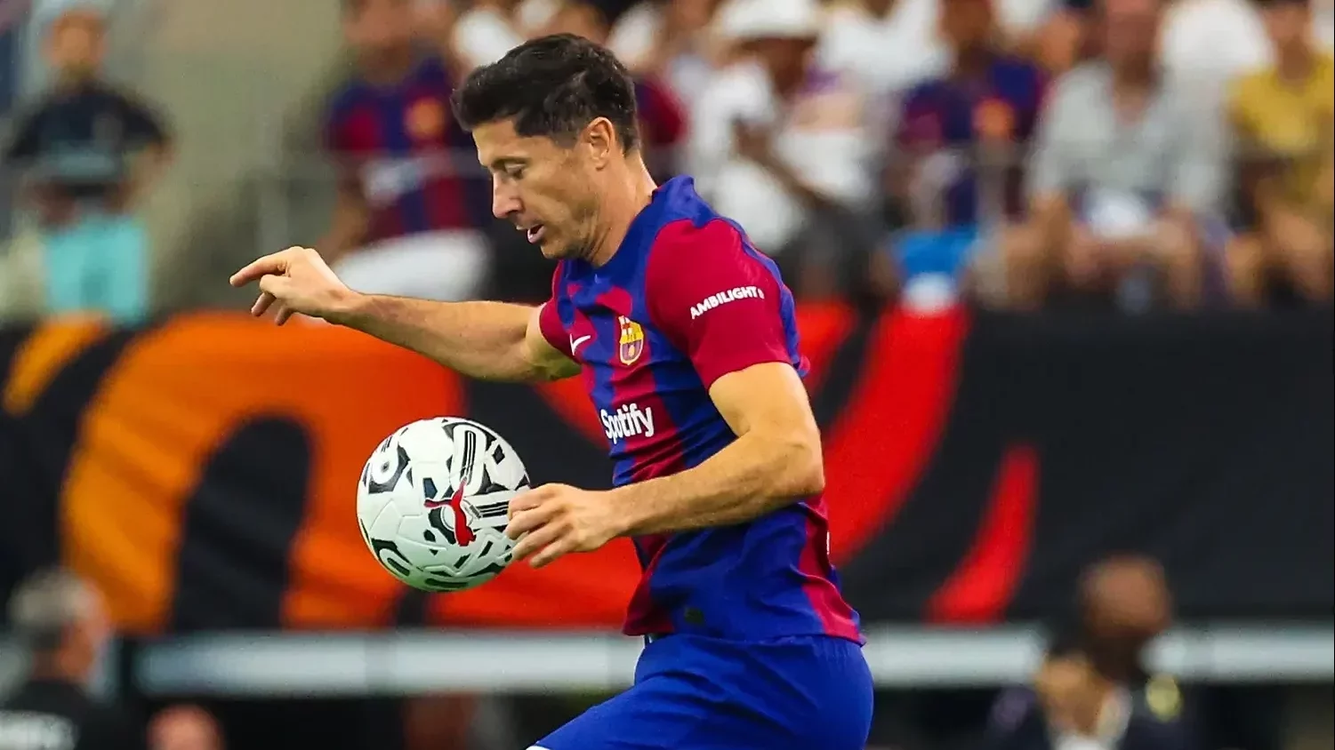 Na zakończenie swojego tournée po Stanach Zjednoczonych FC Barcelona pokonała w meczu towarzyskim AC Milan (1:0). Pierwszą połowę spotkania rozgrywanego na Allegiant Stadium w Paradise Robert Lewandowski musiał oglądać z wysokości ławki rezerwowych.