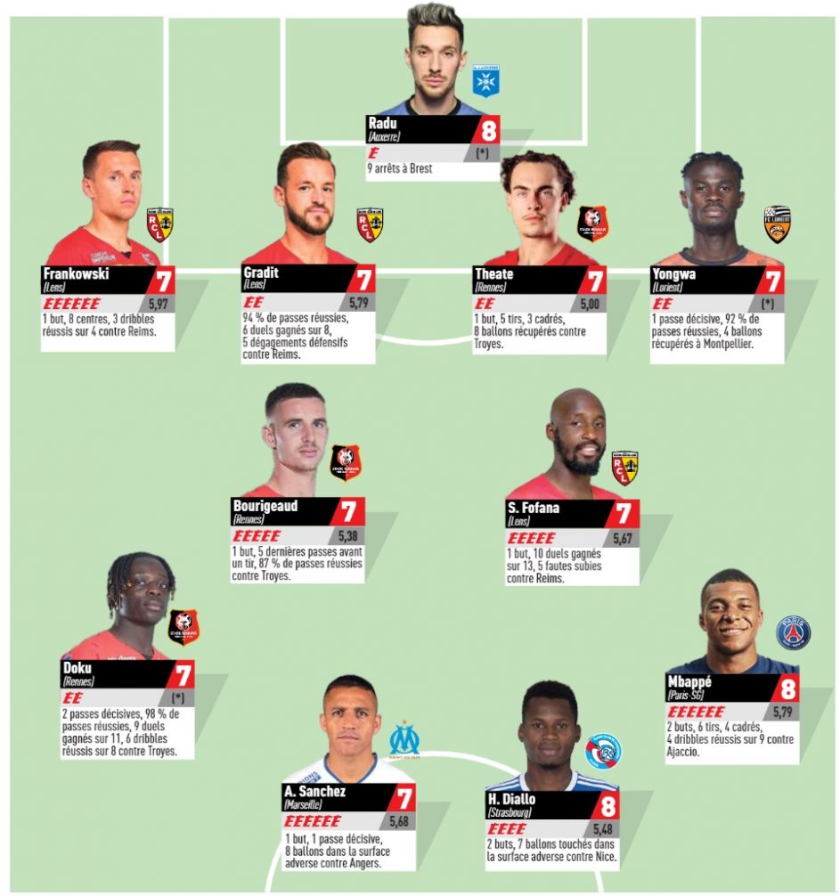 Dobra gra w starciu ze Stade Reims sprawiła również, że Frankowski po raz szósty w tym sezonie znalazł się w najlepszej XI ligowej kolejki. Polak znalazł się w doborowym towarzystwie, bowiem tyle samo razy wyróżnienie to spotkało Alexisa Sancheza z Olympique Marsylia i Kyliana Mbappe z PSG.